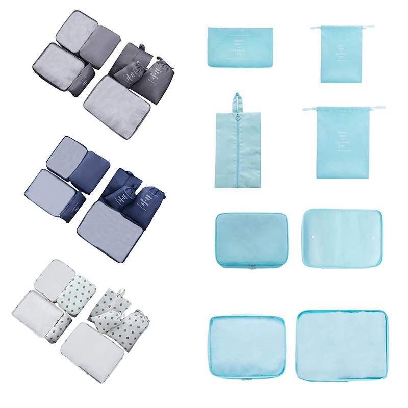 Free shipping 8Pcs Travel Storage Bag Set For Clothes Luggage Packing Square Organizer Suitcase-Navy